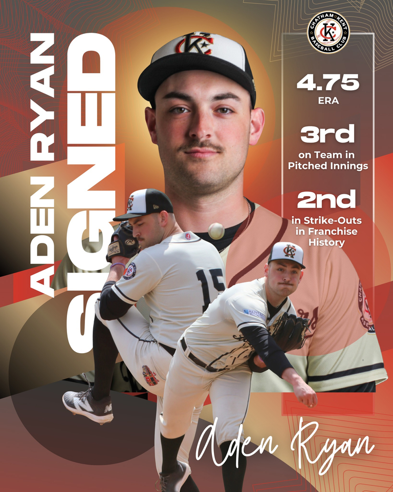 Across his career in Chatham-Kent, Ryan has quietly put together a strong résumé, racking up 72 strikeouts - second-most in franchise history - along with four wins and a 4.75 ERA. Whether getting the start or coming out of the bullpen, his versatility continues to be a major asset for the club.