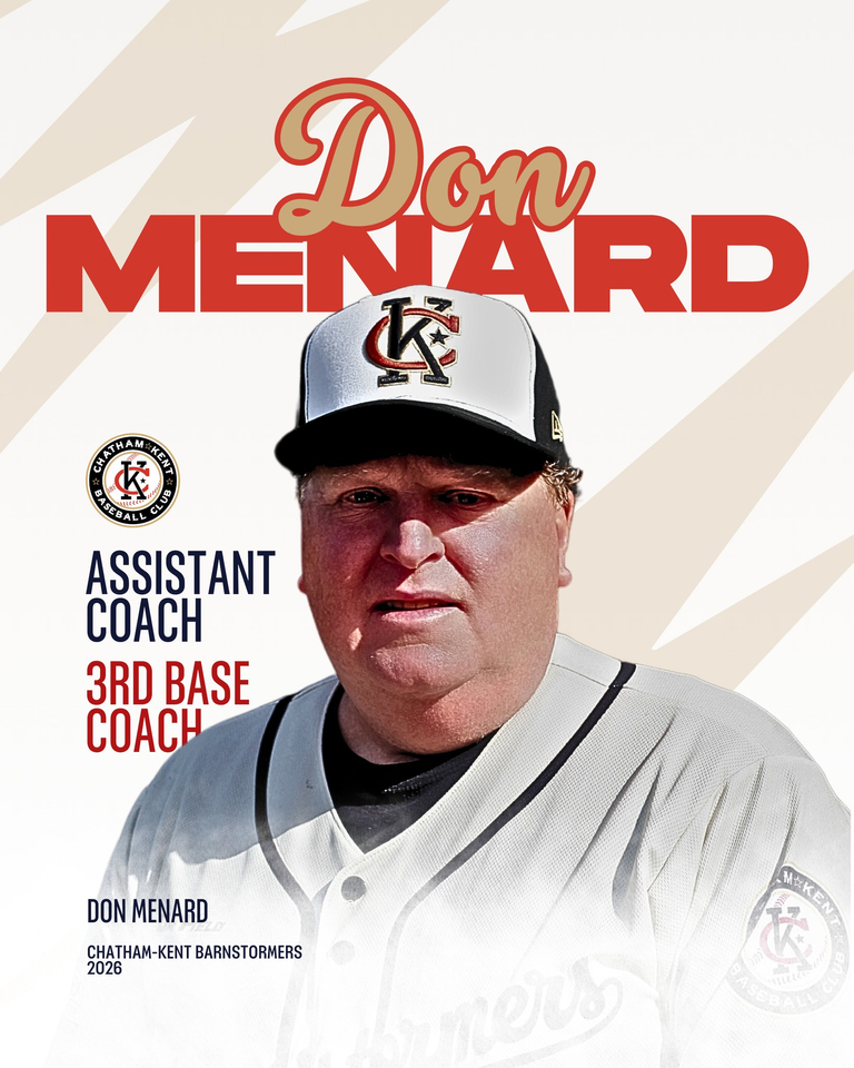 A Windsor resident and one of the most respected baseball minds in the Intercounty ranks, Menard brings more than 40 years of coaching experience back to the Barnstormers dugout. Most recently serving as manager of the Kitchener Panthers, Menard possesses an unmatched understanding of the league - its players, its tendencies and what it takes to win within it.